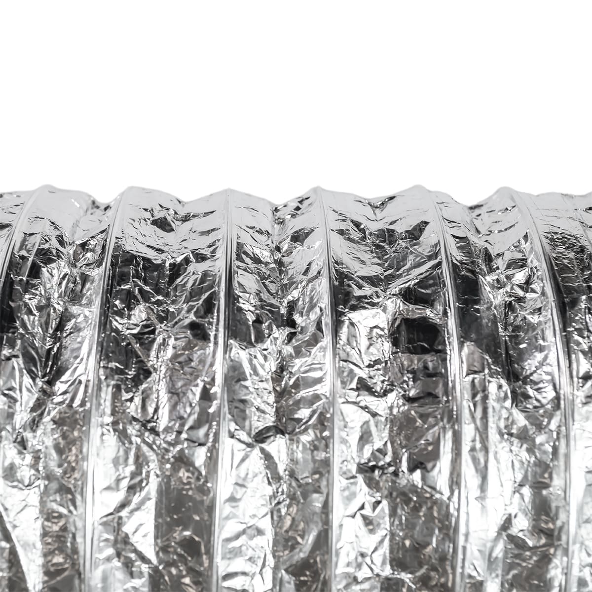 Внутренний воздуховод и внешняя алюминиевая оболочка выдерживают температуру до +150°C. Звукоизоляционный материал не поддерживает горение.