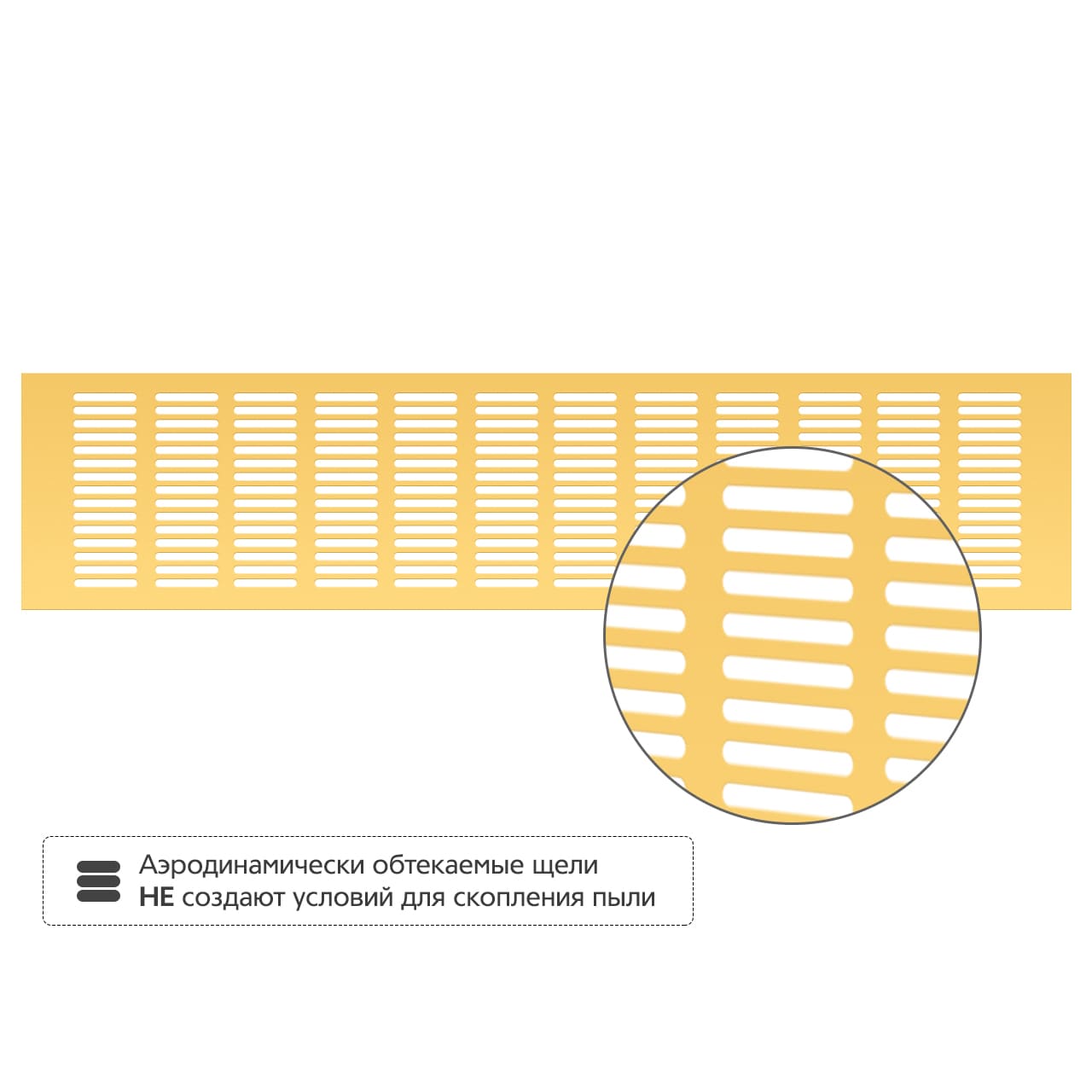 • Аэродинамически обтекаемые щели не создают условий для скопления пыли