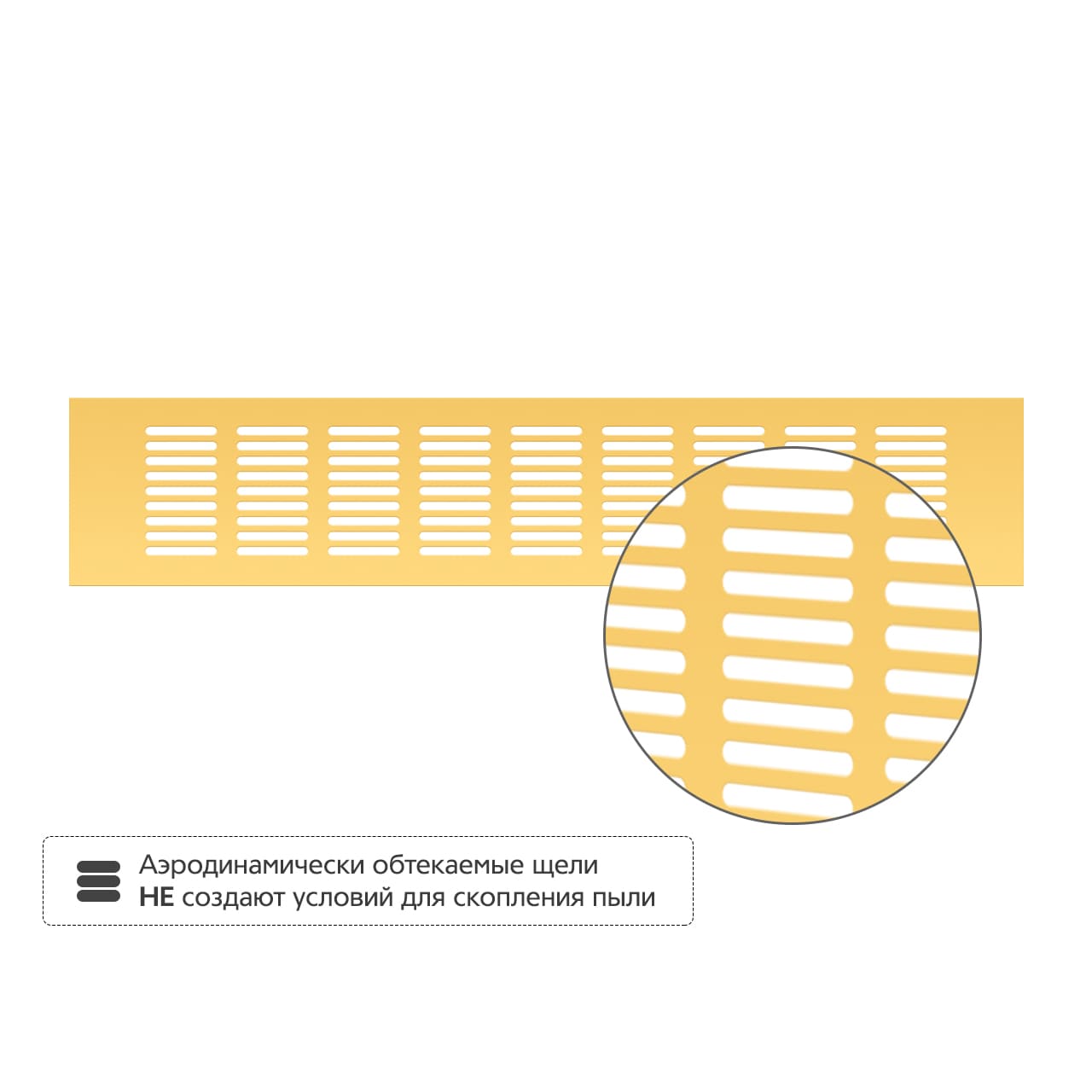 • Аэродинамически обтекаемые щели не создают условий для скопления пыли