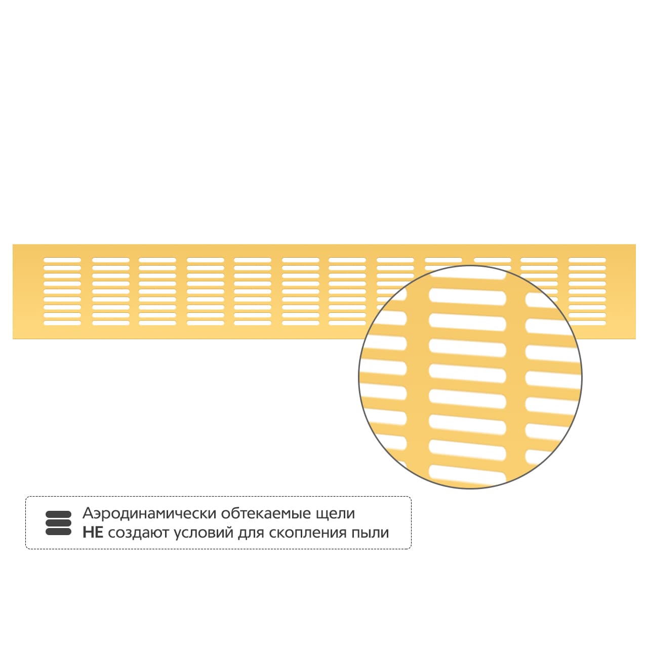 • Аэродинамически обтекаемые щели не создают условий для скопления пыли