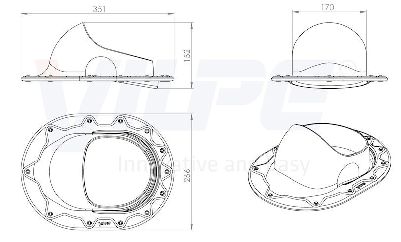 VILPE® CLASSIC проходной элемент предназначен для монтажа на фальцевой и готовой скатной битумной кровле труб и вентиляторов диаметром 110 - 160 мм и антенного ворота. Герметичность монтажа обеспечивается резиновым уплотнителем на внутренней стороне фланца.