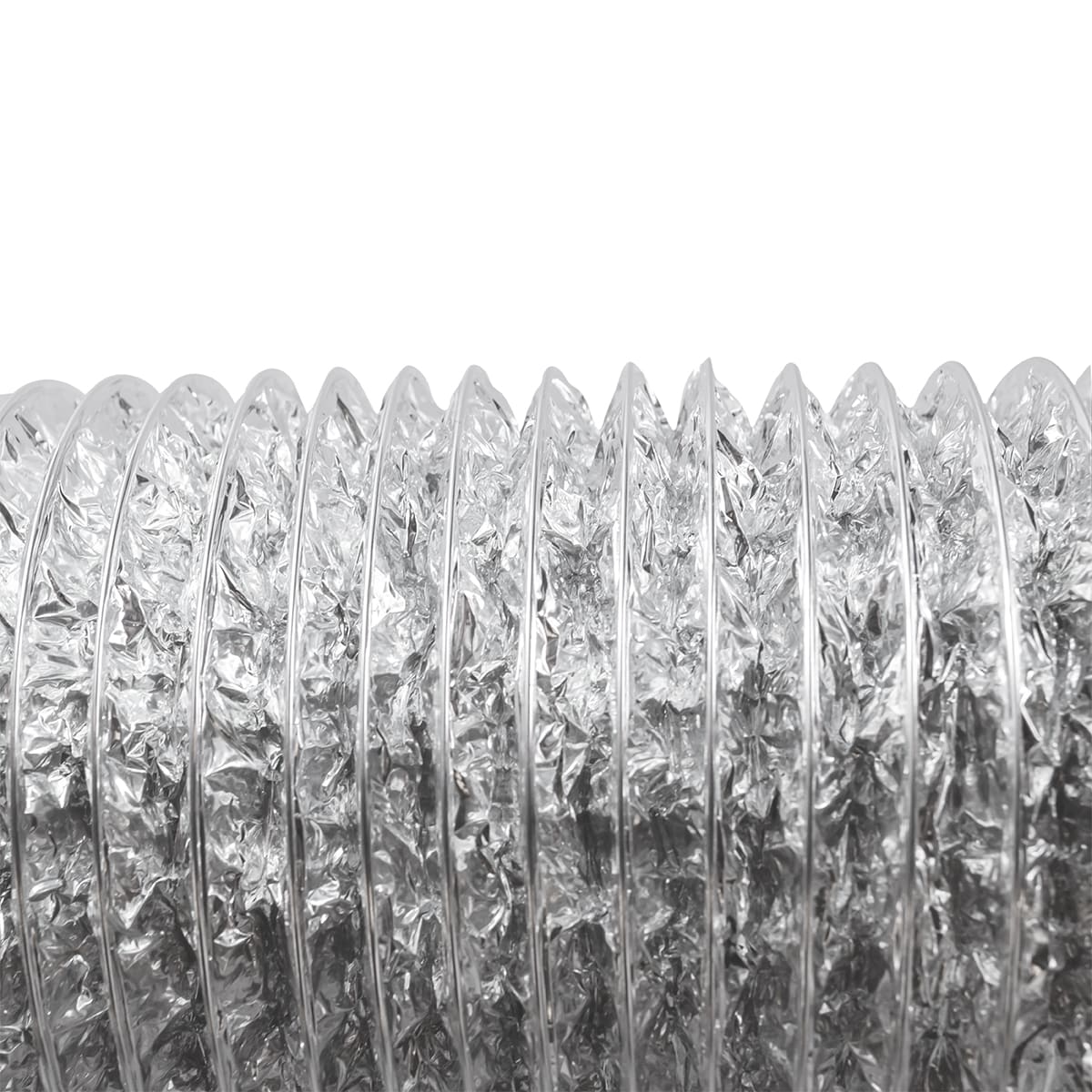 В отличии от большинства аналогов воздуховод состоит из пяти слоев алюминия и полиэстера. Именно алюминий в составе воздуховода обеспечивает устойчивость к высоким температурам. Три слоя алюминия «запечатывают» слои полиэстера и предотвращают распространения огня.